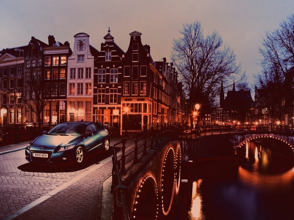 «Автомобиль на мосту в свете фонаря»