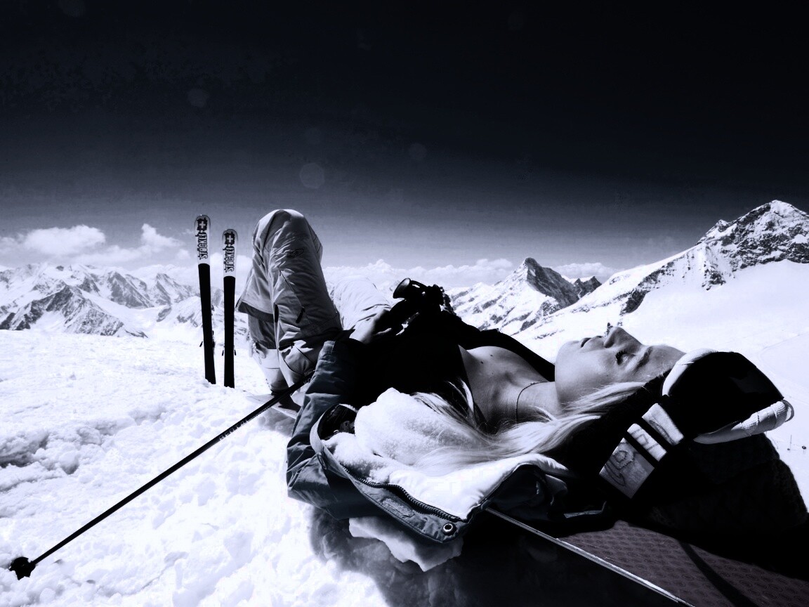 «Лыжница отдыхает в горах»