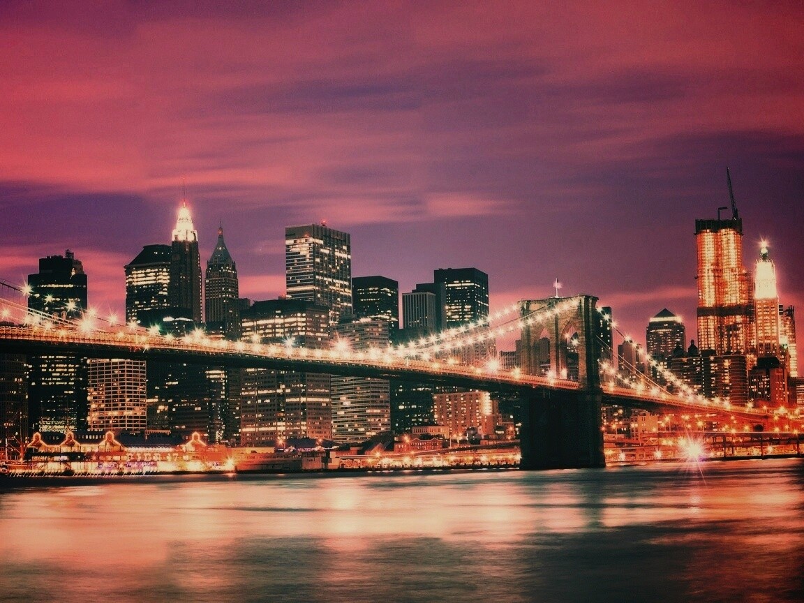 «Бруклинский мост на фоне ночного Нью-Йорка»
