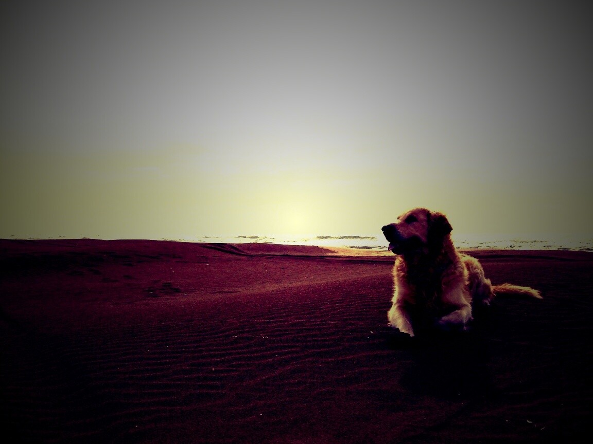 «Красивая собака на оранжевом песке»