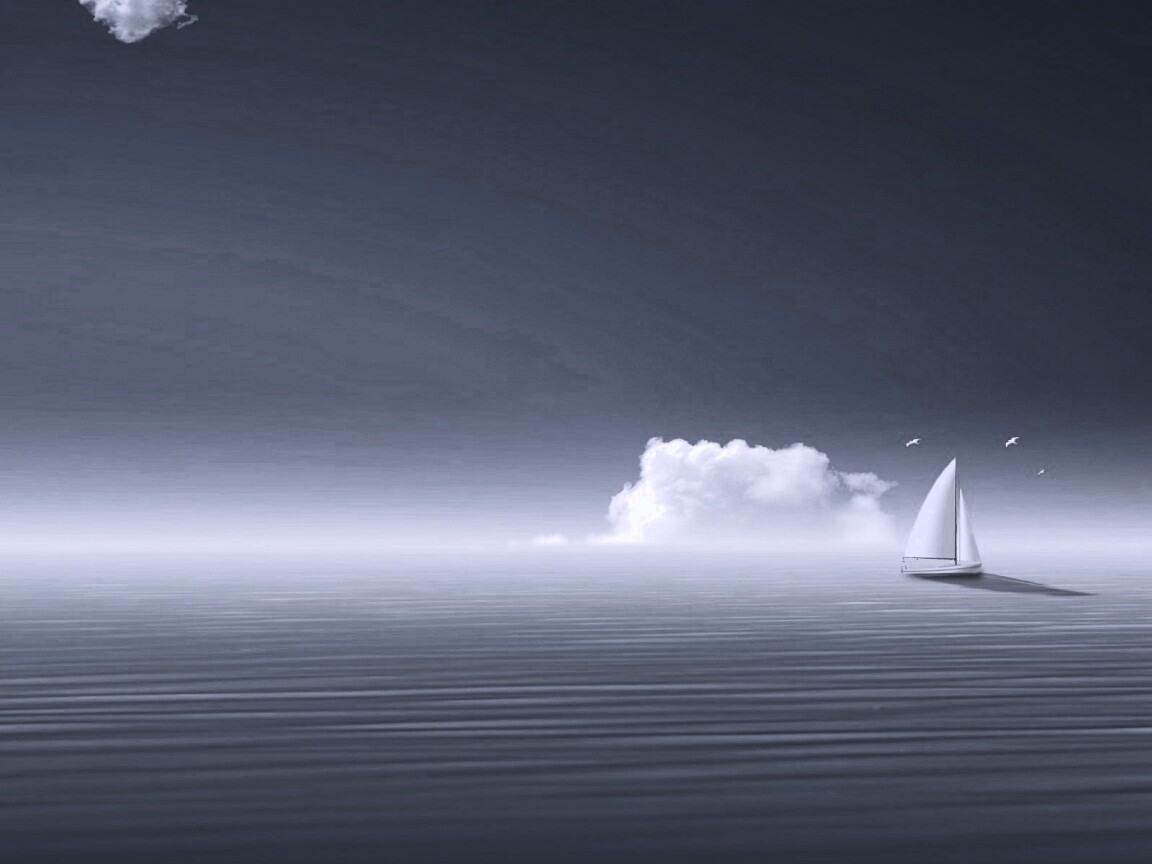 «Голубые обои под хорошее настроение с парусником»