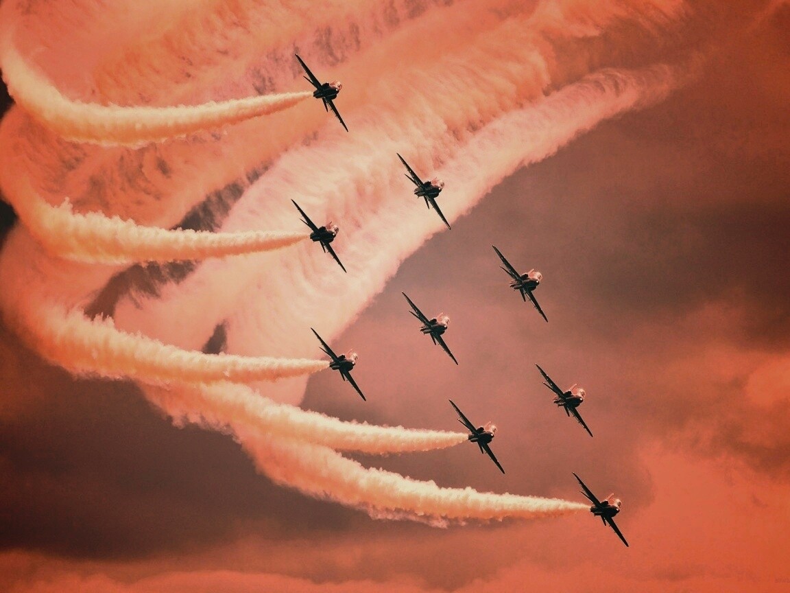 «Красивая эскадра самолетов на авиашоу»
