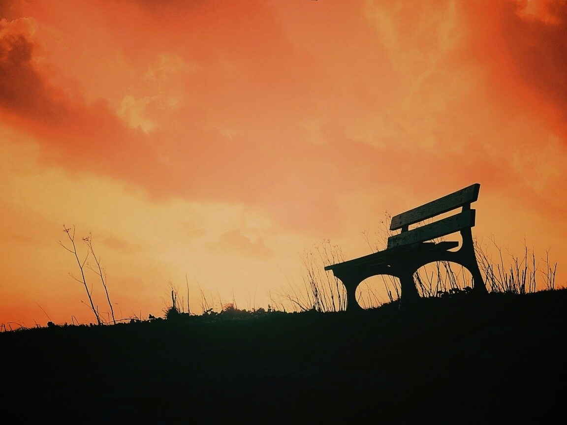 «Силуэт скамейки на фоне неба»