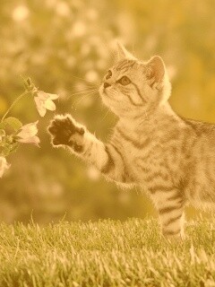 «Котенок играет с цветами»