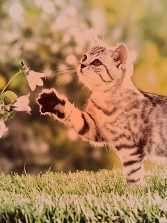 «Котенок играет с цветами»