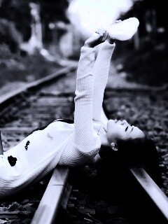 «Модель на железнодорожных путях»