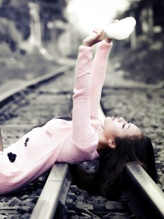 «Модель на железнодорожных путях»
