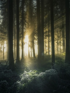 «Свет пробивается сквозь стволы деревьев»