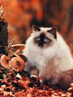 «Пушистый кот среди пожелтевшей листвы»