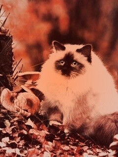 «Пушистый кот среди пожелтевшей листвы»