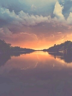 «Молнии на фоне заката, стандартные обои mac»