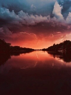 «Молнии на фоне заката, стандартные обои mac»