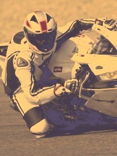 «Байкер в белой экиперовкена Априлия РСВ4»