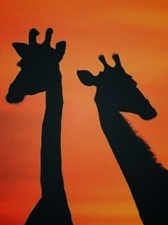 «Три силуэта жирафов на фоне неба»