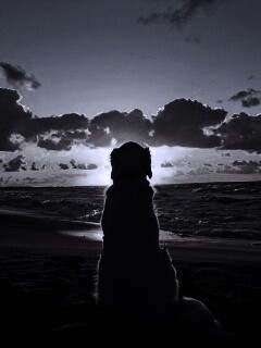 «Собака наблюдающая закат на пляже»
