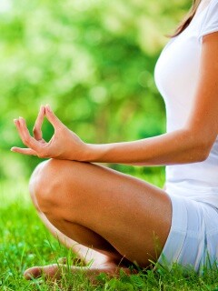«Девушка медитирует в позе лотоса на траве»