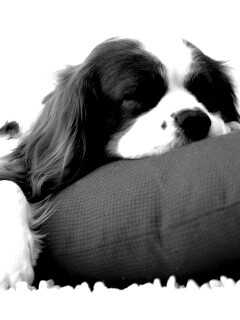 «Спящий щенок на красной подушке»