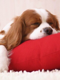 «Спящий щенок на красной подушке»