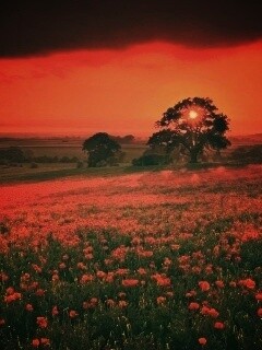 «Закат на поле красных цветов»