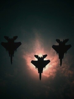 «Ряд истрибителей на фоне солнца»