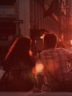 «Девушка и парень с велосипедом на закате»