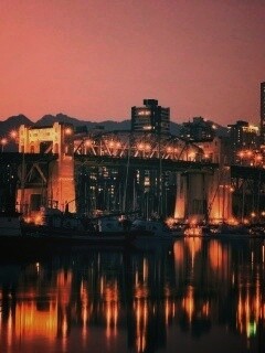 «Мост и катера на закате»