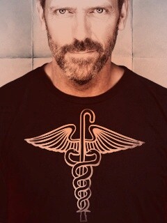 «Доктор Хаус в футболке со змеями на трости»