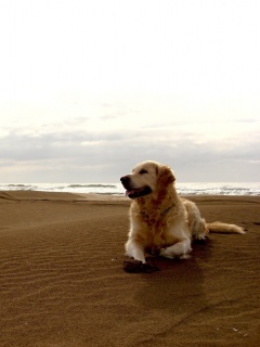«Красивая собака на оранжевом песке»