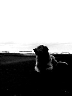 «Красивая собака на оранжевом песке»