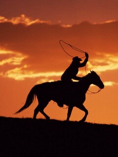 Обои для рабочего стола «Силуэт ковбоя на закате» 240х320 с фильтром vibrance (оригинал 1920х1200)