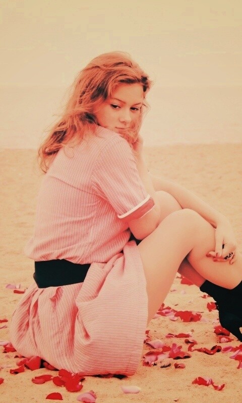 «Девушка среди лепестков на пляже»