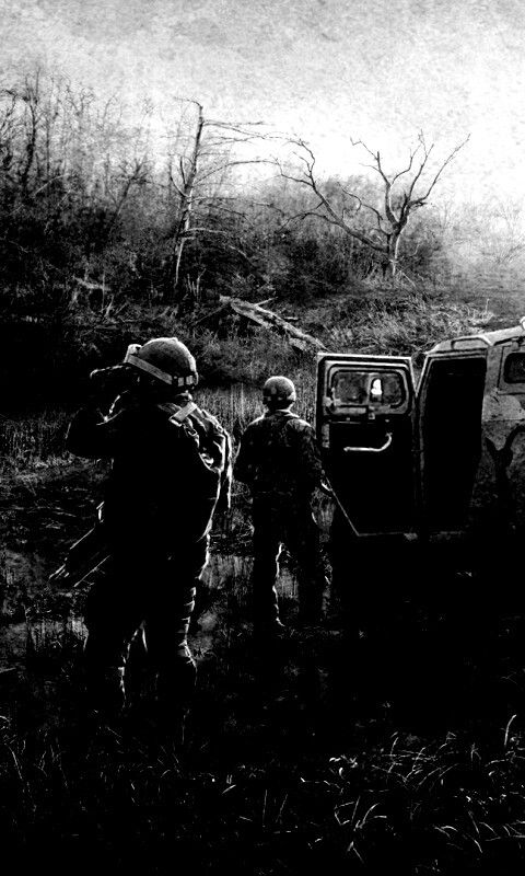 «Солдаты из сталкера на болоте»