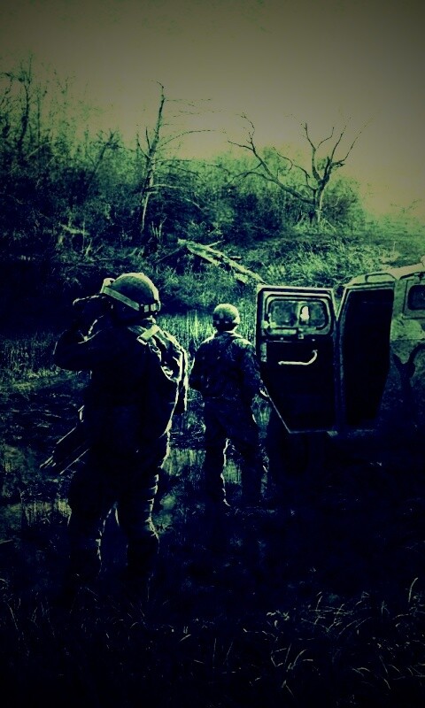 «Солдаты из сталкера на болоте»