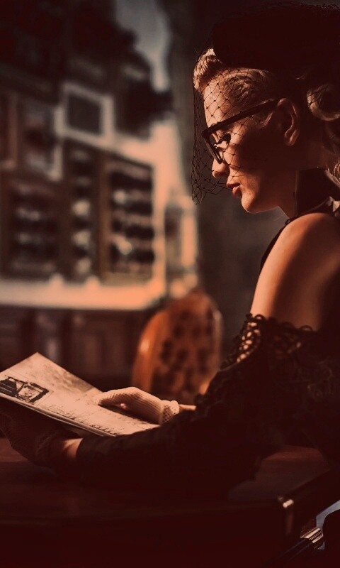 «Витажная девушка в кафе»