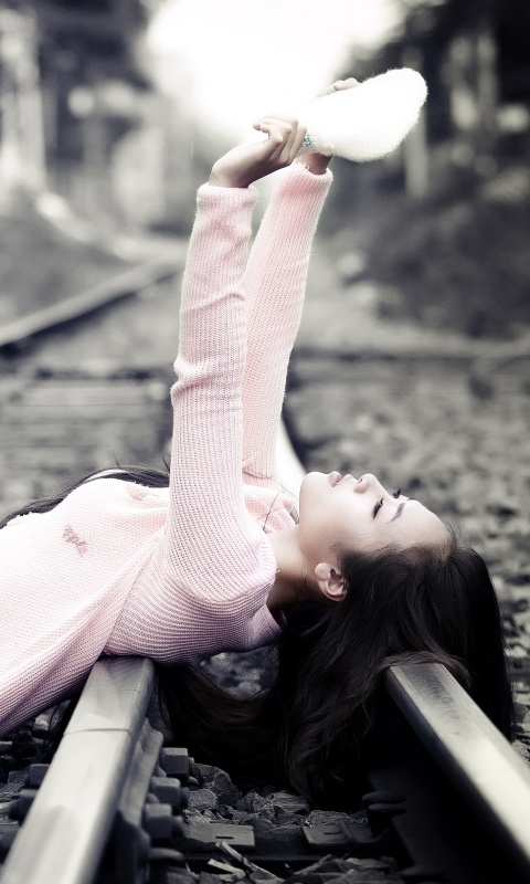 «Модель на железнодорожных путях»