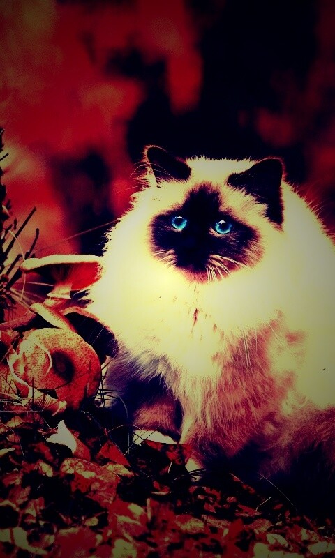 «Пушистый кот среди пожелтевшей листвы»