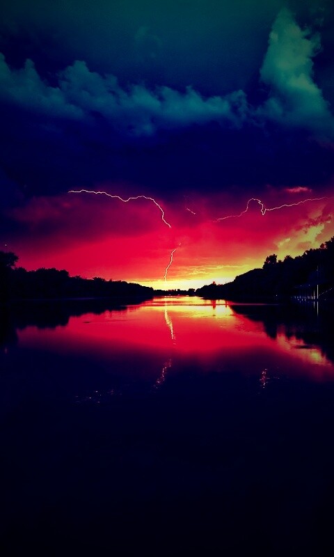 «Молнии на фоне заката, стандартные обои mac»