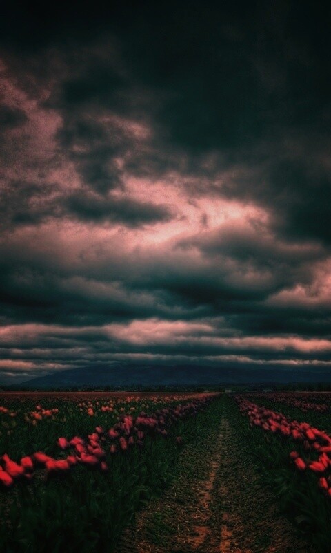«Цветочное поле под грозовым небом»