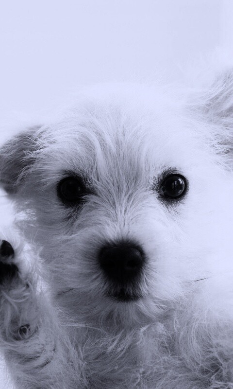 «Белый любознательный щенок»