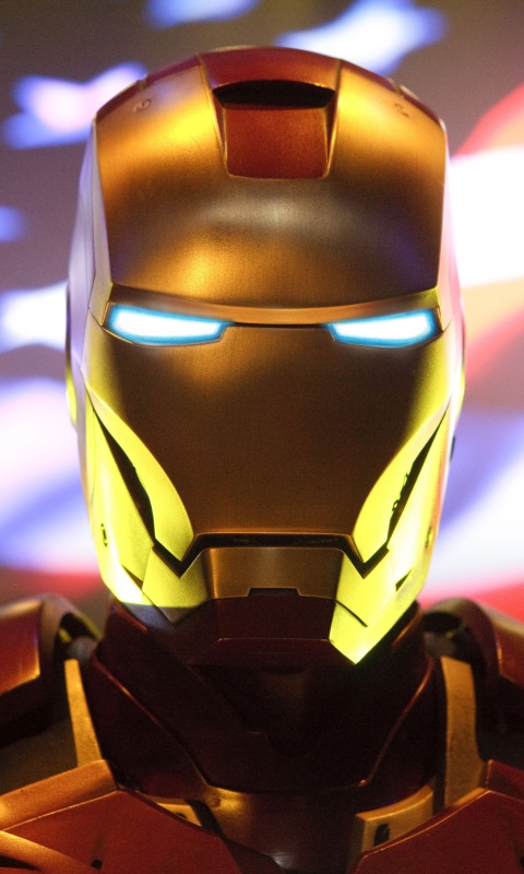 Обои для рабочего стола «Железный человек на фоне американского флага» 480х800 (оригинал 3999х2666)