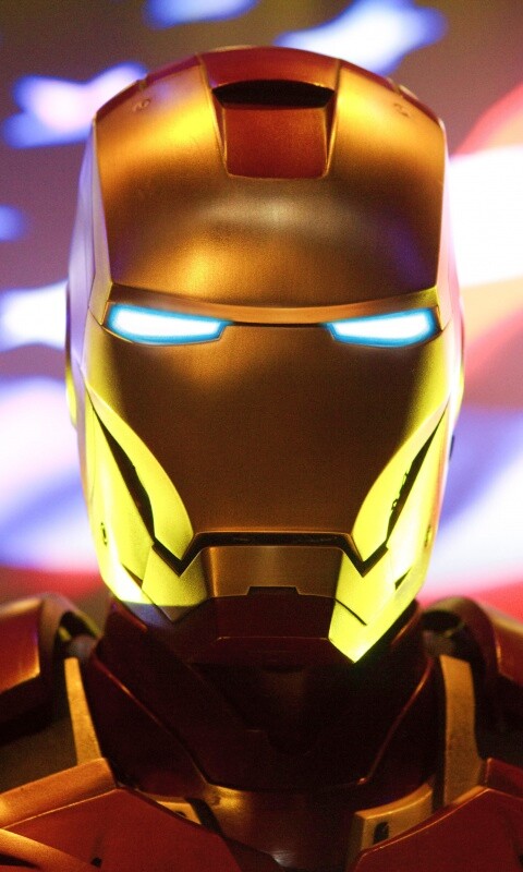 «Железный человек на фоне американского флага»