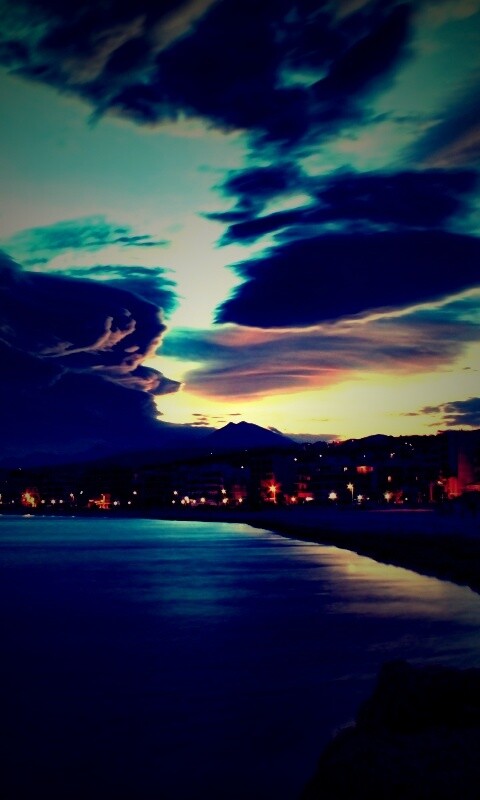 «Красивый закат над городом у моря»