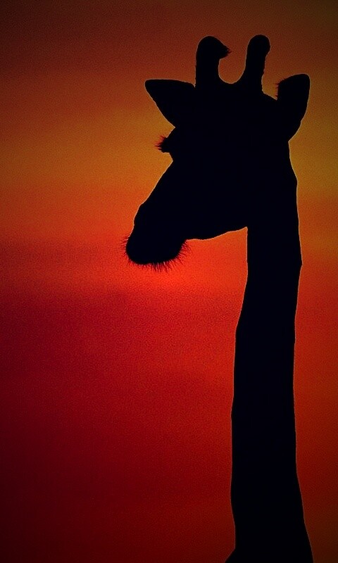 «Три силуэта жирафов на фоне неба»