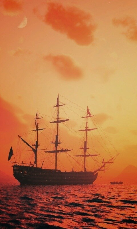 «Трехпалубный парусный корабль на закате»