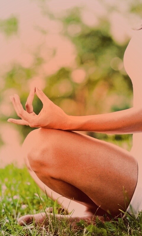 «Девушка медитирует в позе лотоса на траве»