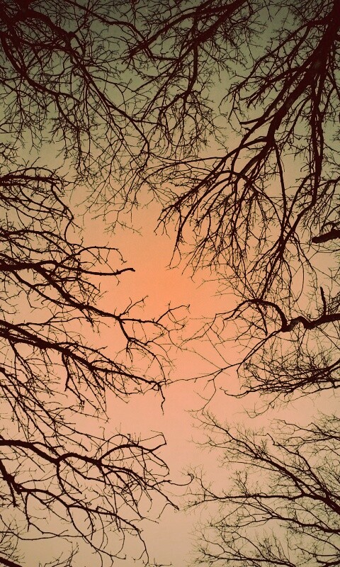 «Голые кроны деревьев на фоне неба»