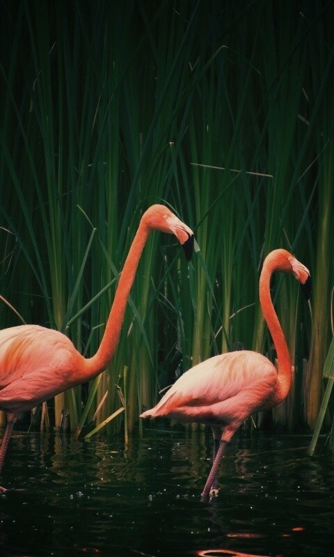 «Красивые розовые фламинго на озере»