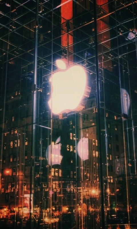«Отражение логотипа Apple в стеклянном здании»