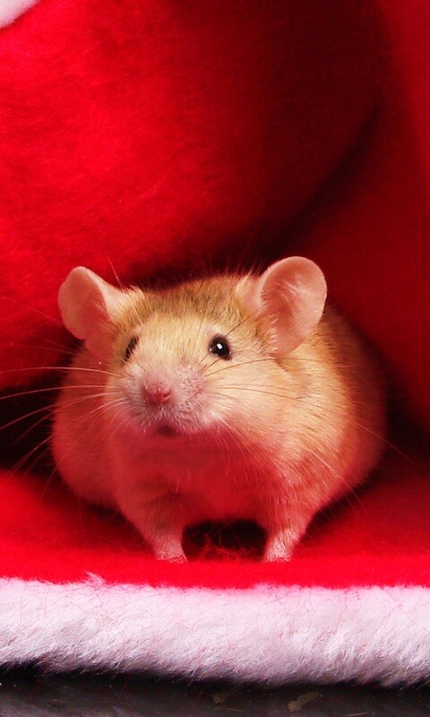 Обои для рабочего стола «Толстый новогодний мышонок» 480х800 с фильтром vibrance (оригинал 1920х1200)