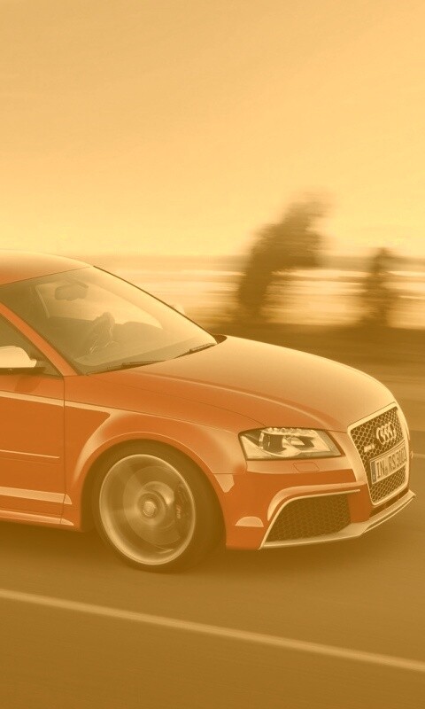 «Красная Audi модели RS3 на дороге»
